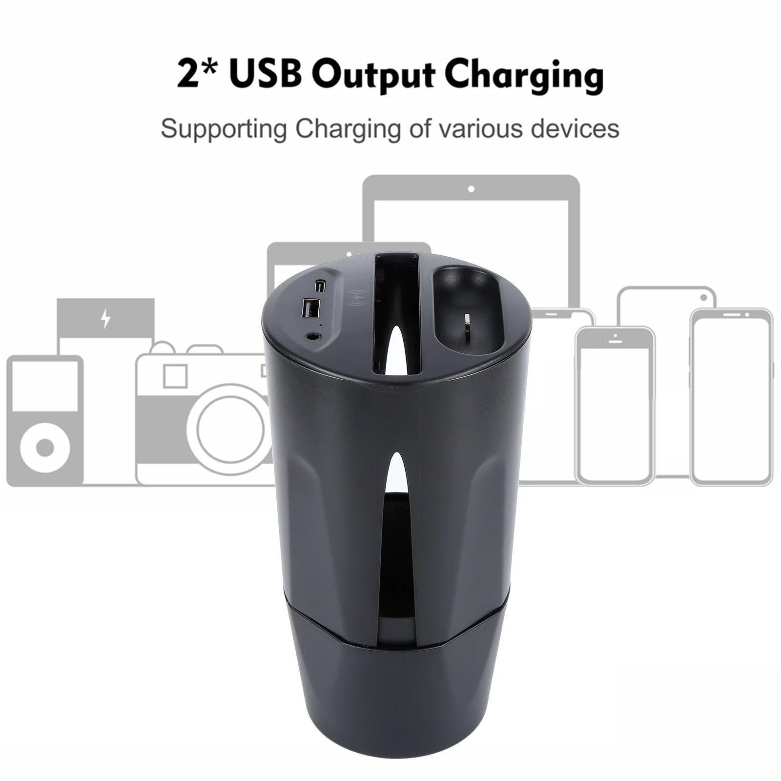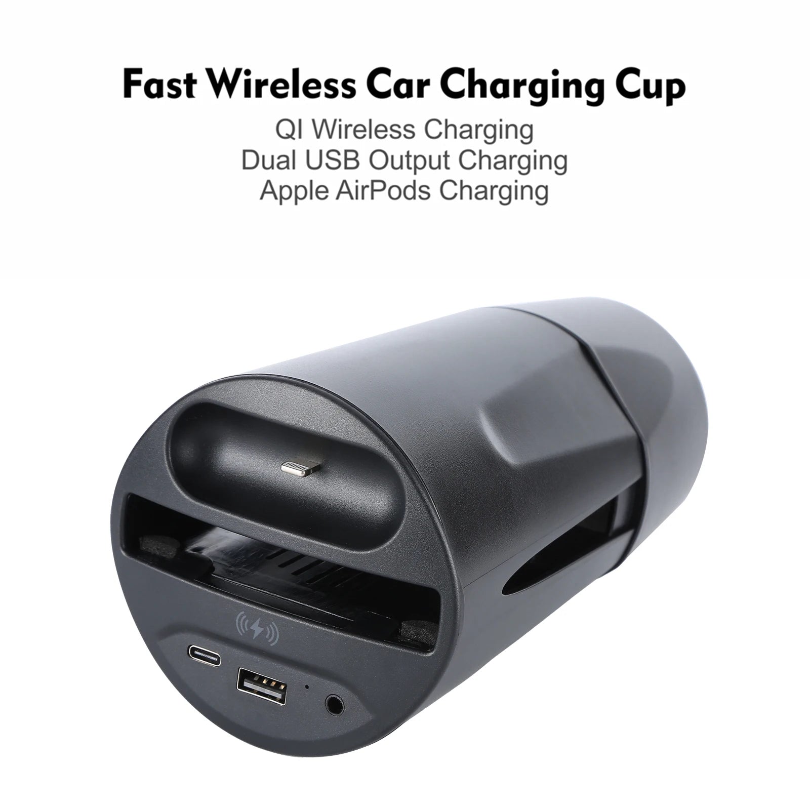 Design: unique cup design, with dual USB port can charge two devices simultaneously, also there is one wireless earphone charging port, very convenient for your daily charging.